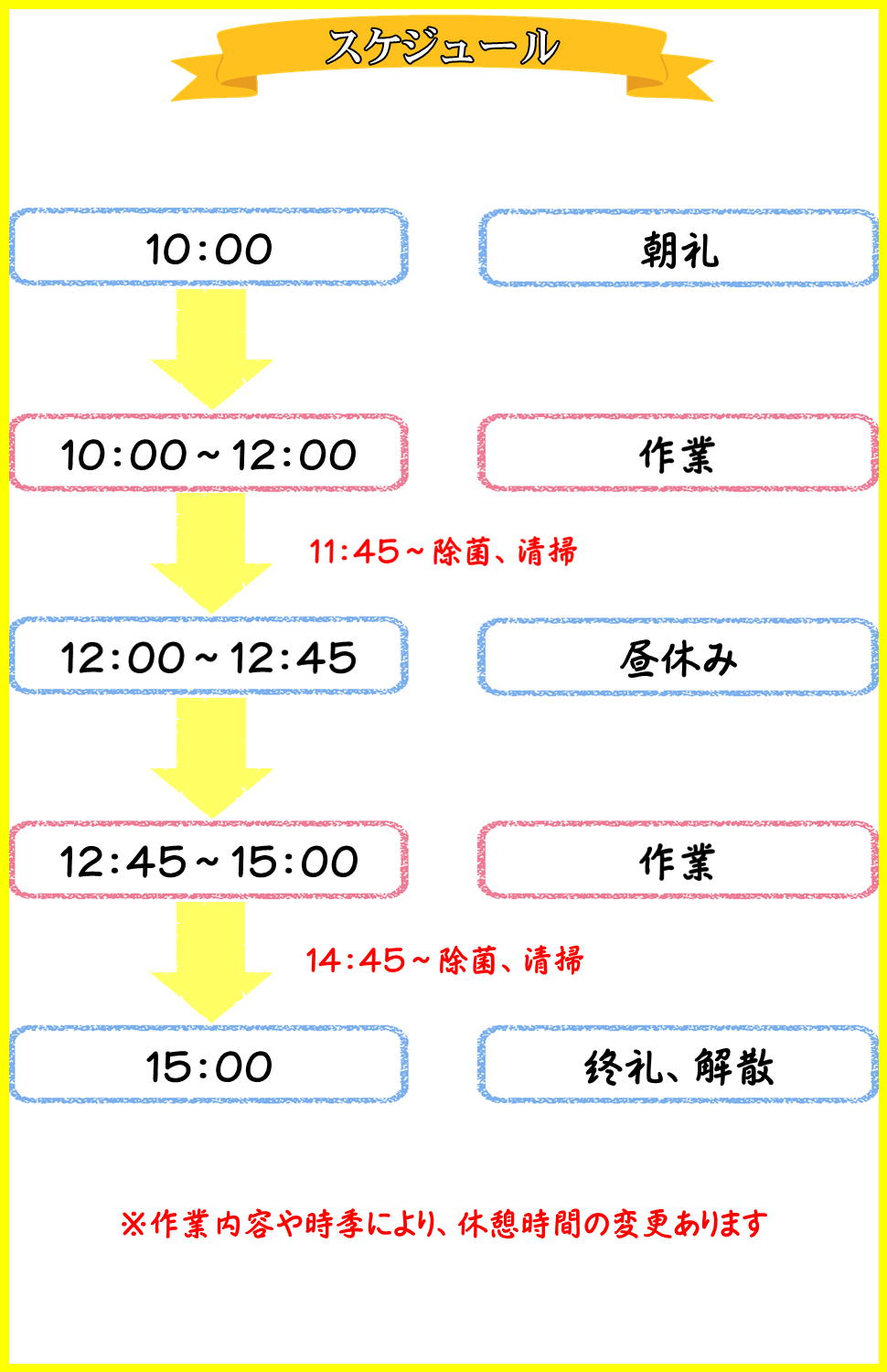 ※基本的な流れはこちらになりますが、時間帯等、他のケースもございますので 詳しくはお問い合わせ下さい。
